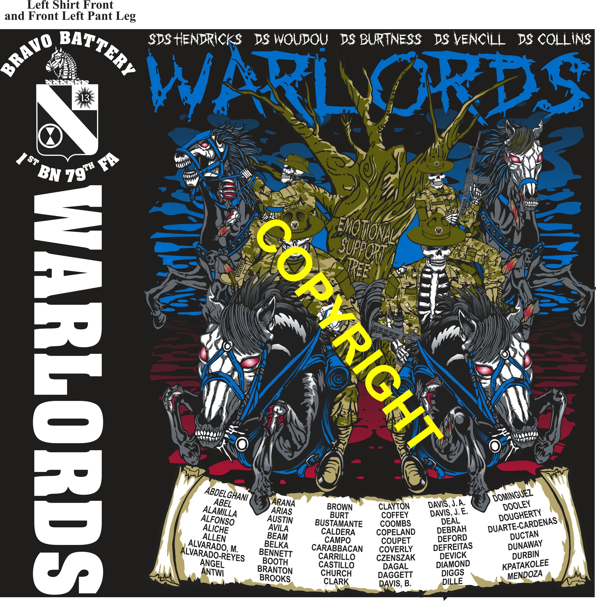 - The sweat pants will have the same design as the front of the t-shirt with the platoon name running down the front left thigh.