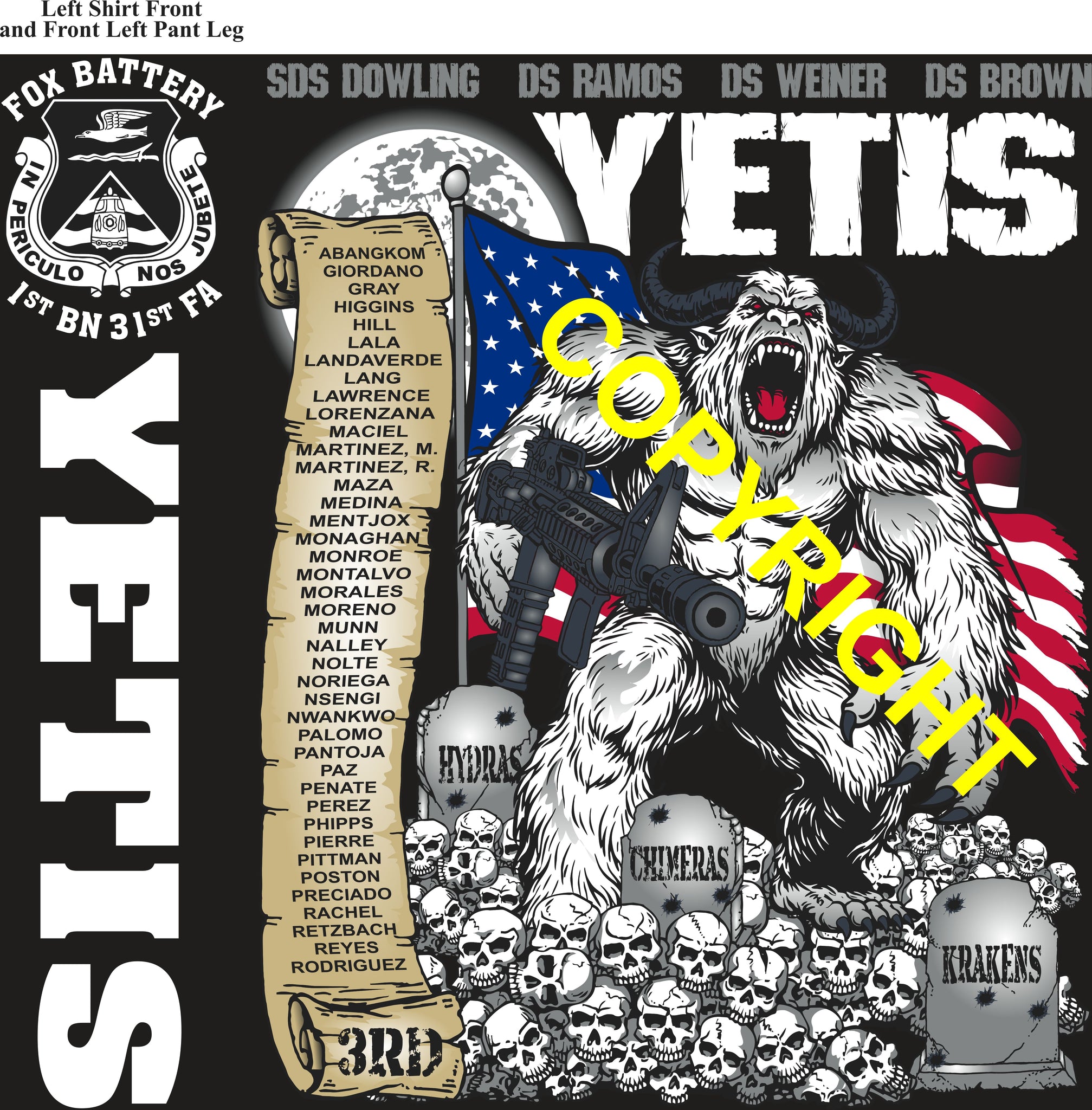 Platoon Items (direct-to-garment print) FOX 1st 31st YETIS 3rd PLATOON MAR 2026 PRE-SALE GRADUATING 3-27-2026
