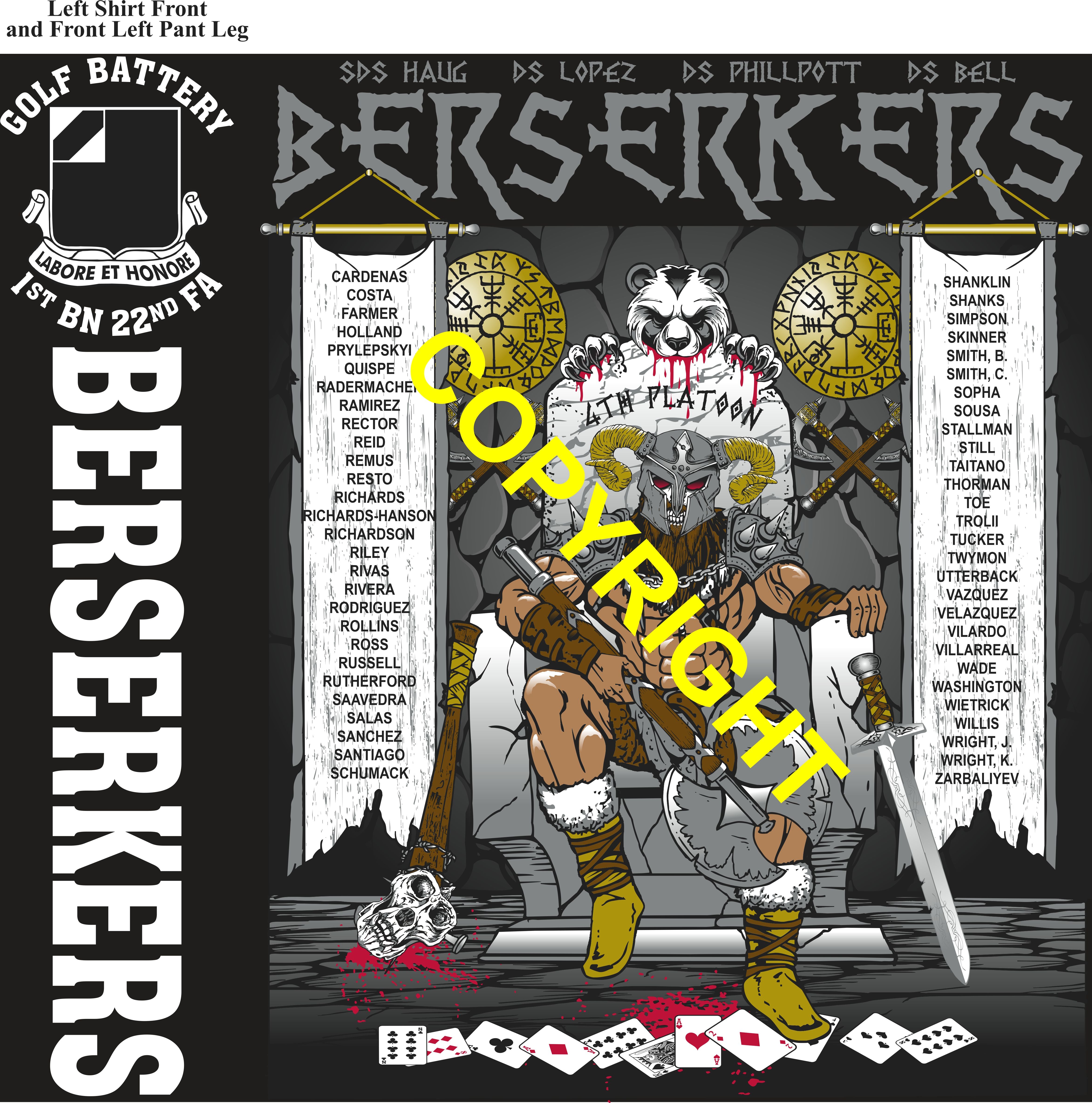 Platoon Items (direct-to-garment print) GOLF 1st 22nd BERSERKERS 4th PLATOON NOV 2025 PRE-ORDER GRADUATING 11-7-2025