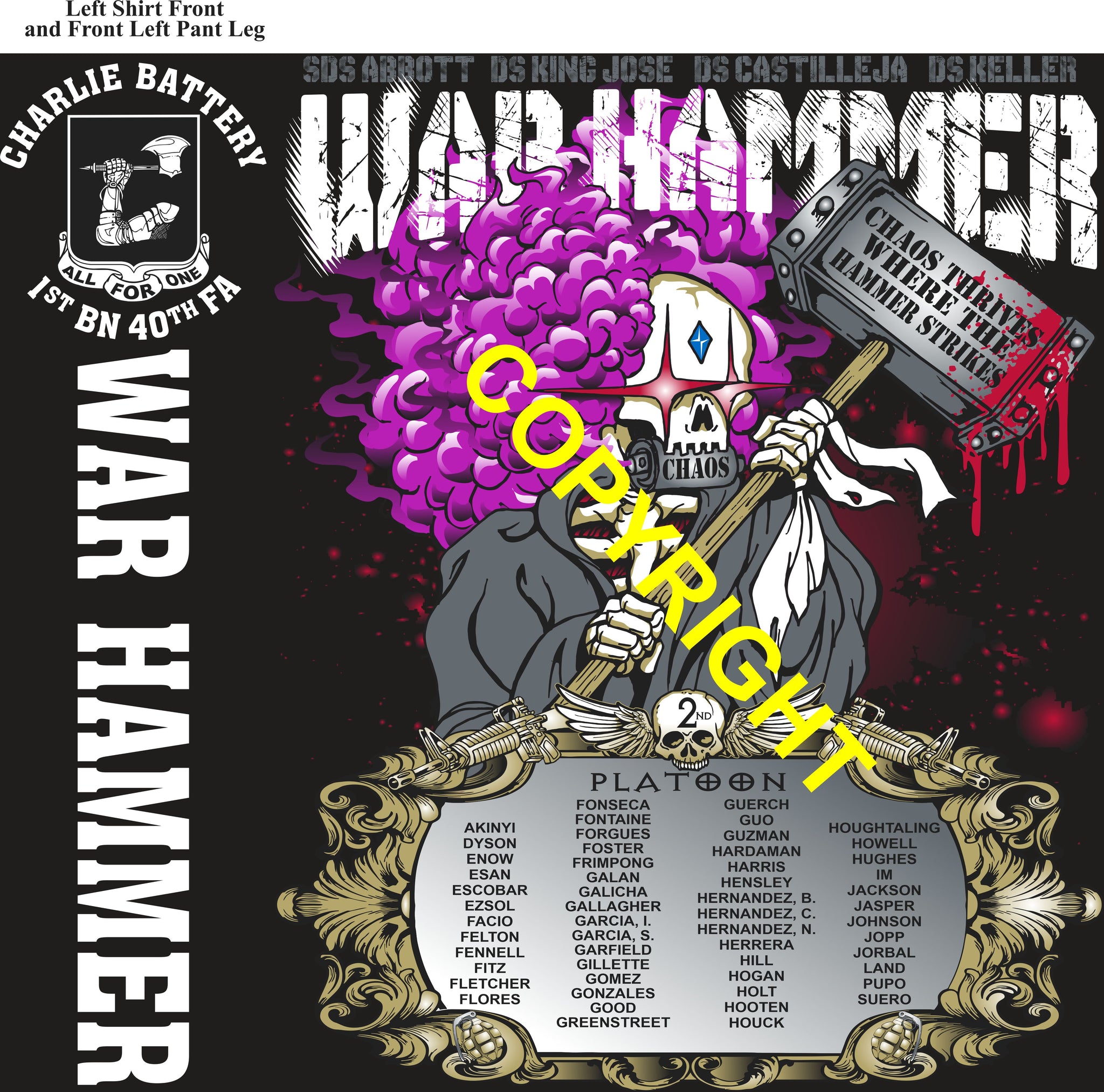 Platoon Items (direct-to-garment print) CHARLIE 1st 40th WAR HAMMER 2nd PLATOON OCT 2025 PRE-ORDER GRADUATING 10-24-2025